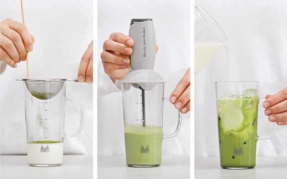Use the motor whisk to froth milk, then blend it with matcha to create a smooth, creamy latte—or add the frothed milk on top as a for an extra finish.